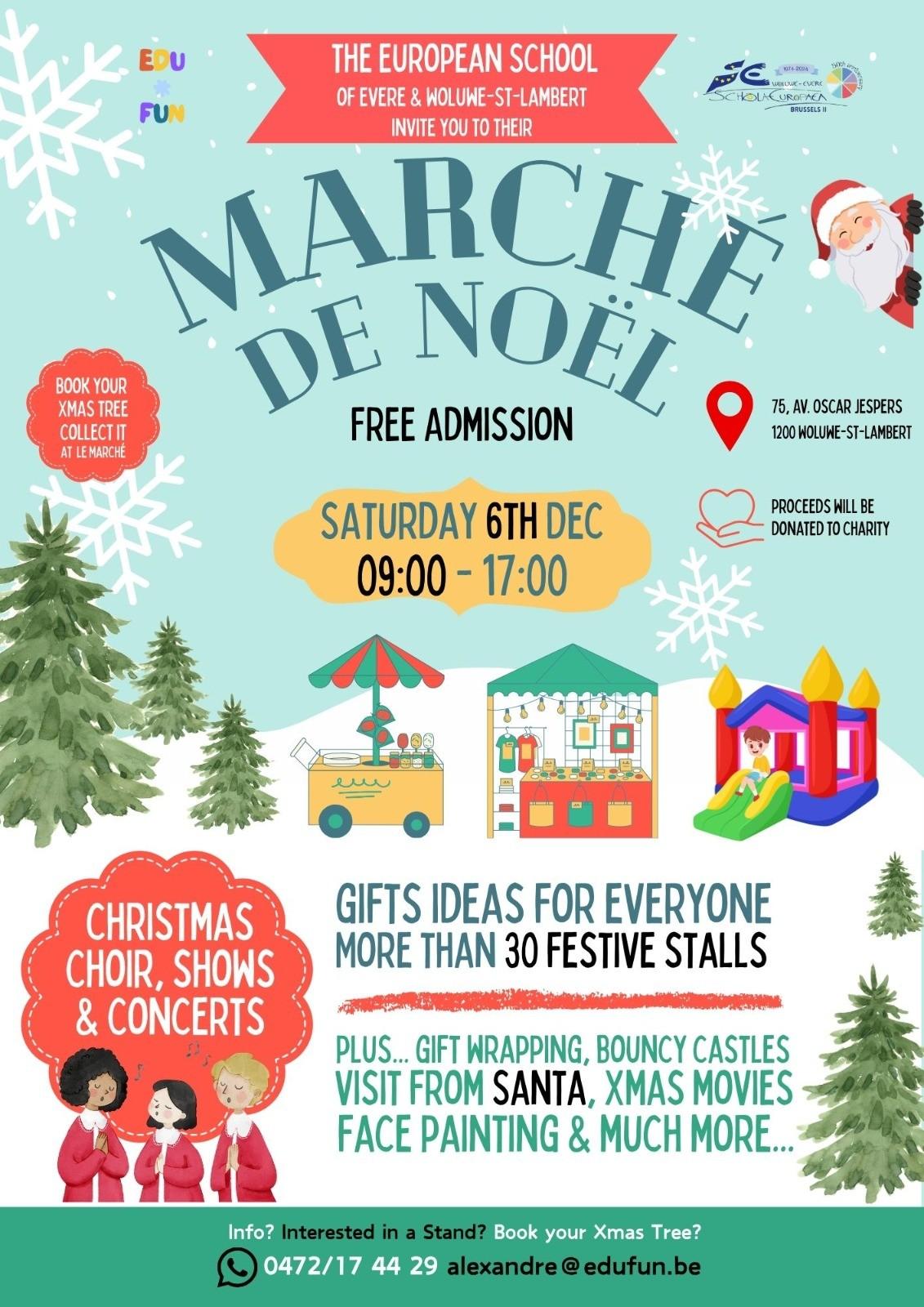 We are happy to invite you all to our big Christmas Market on Saturday 6 December! The programme includes musical performances, more than 30 stalls with a thousand and one gift ideas to prepare for your celebrations, numerous delicacies, typical drinks and dishes, activities for young and old, etc. The profits from this event will be donated to various charities chosen by the stallholders*. Everything you need to experience the magic of Christmas in one place!