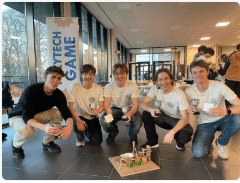 A group of students from the S7 classes took part in the Polytech Game competition organized last week-end. They presented a "propulsion model", which gained recognition from the ULB jury and achieved second place among many participating teams.