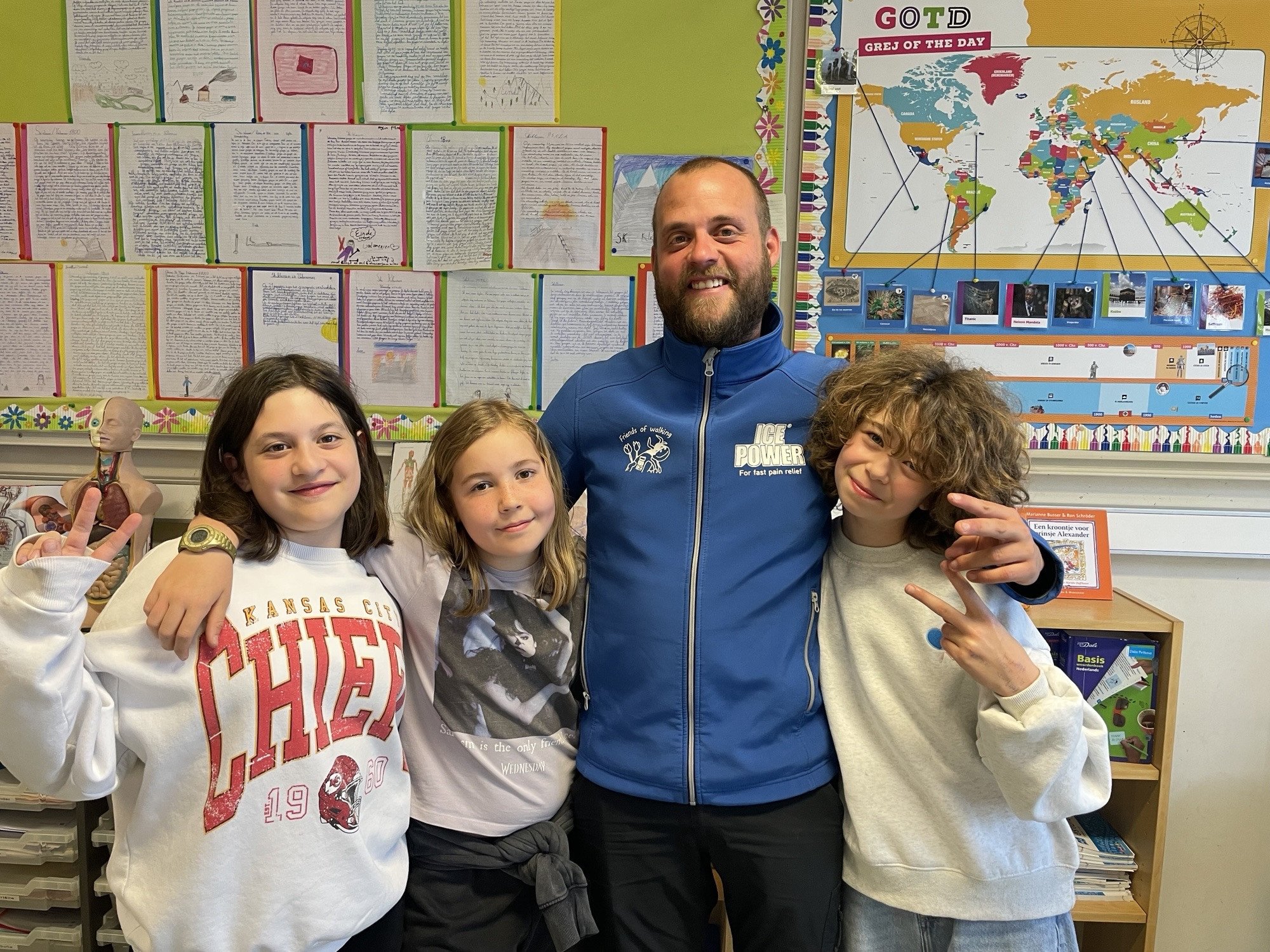 As part of Health Week, some primary classes in Woluwe had the opportunity to meet Lenny Bassleer, an ultra-marathon hiker who holds a European record and two world records as the youngest person to have covered the longest distance ever recorded.